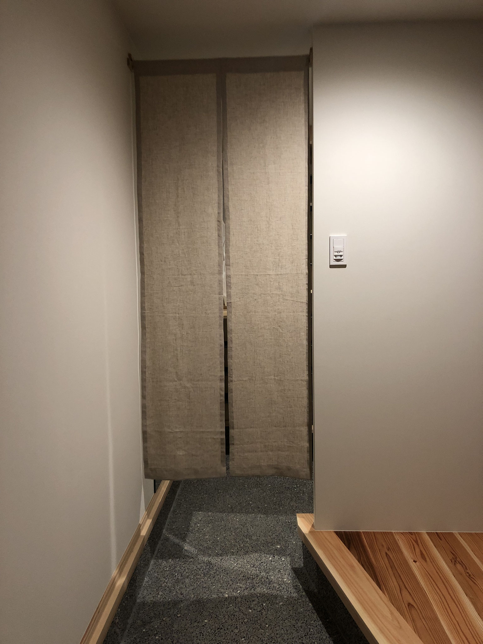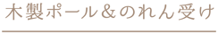 和の空間によく似合う、木製のポール&のれん受け。のれん受けは深めに作ってあり、人が出入りする際、ポールが外れにくいよう工夫しています。