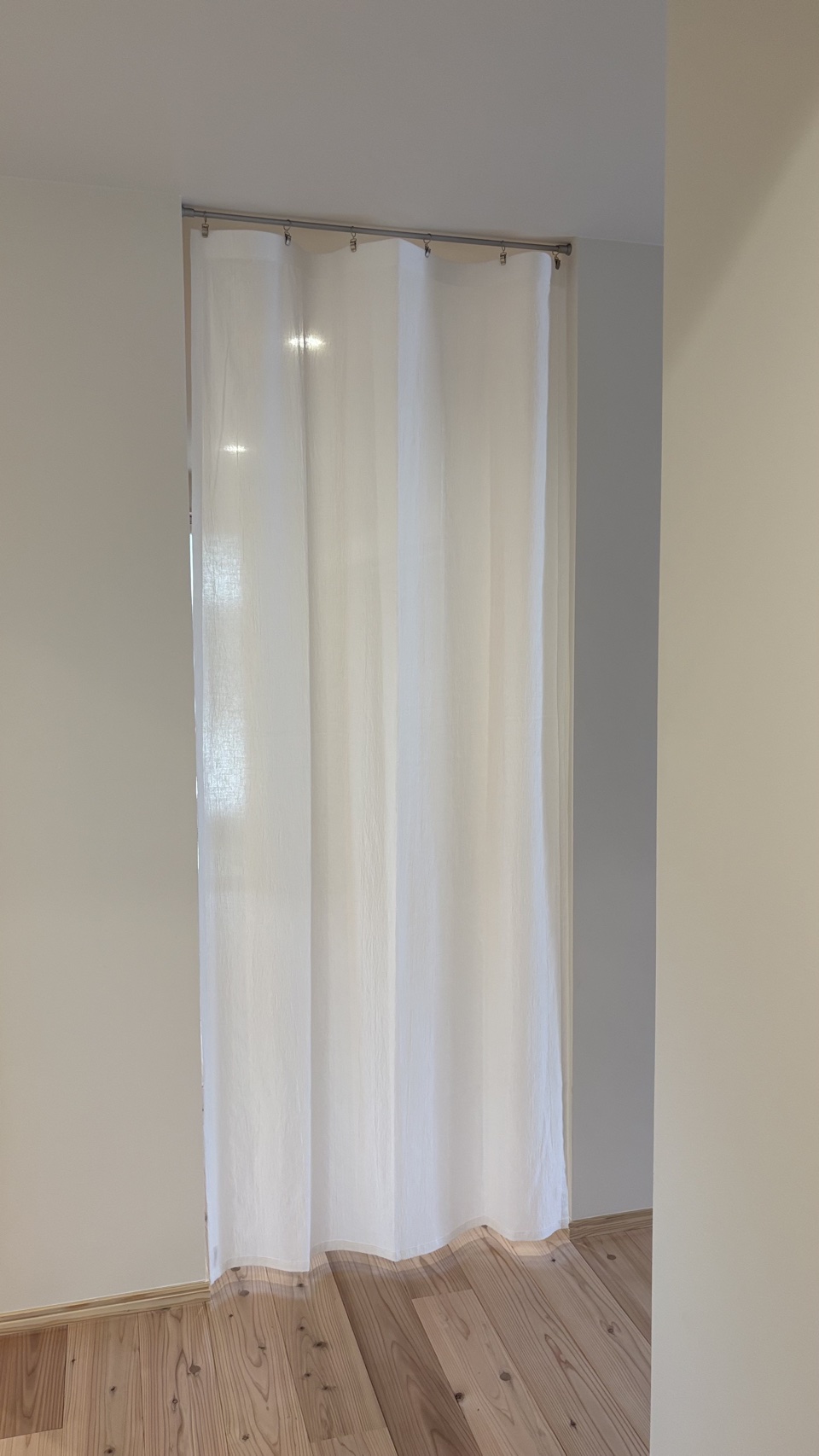新しいカーテンに掛け替えて