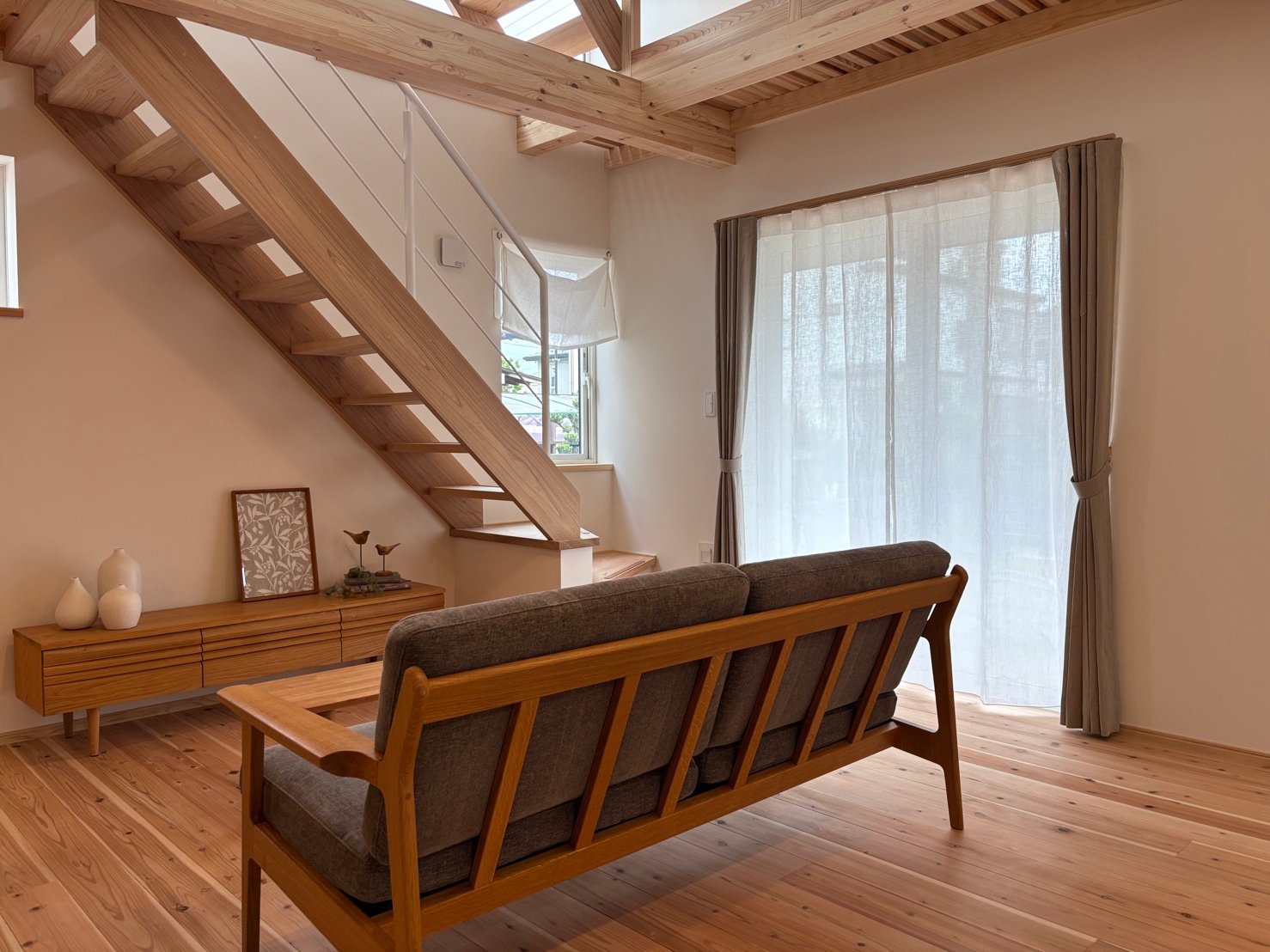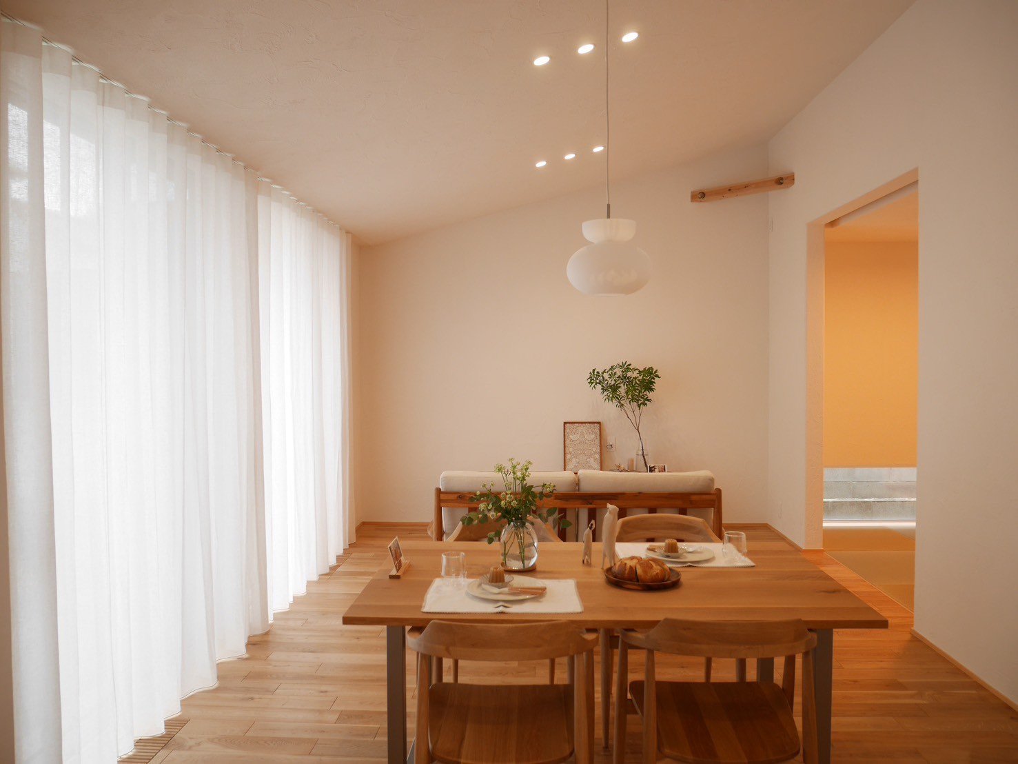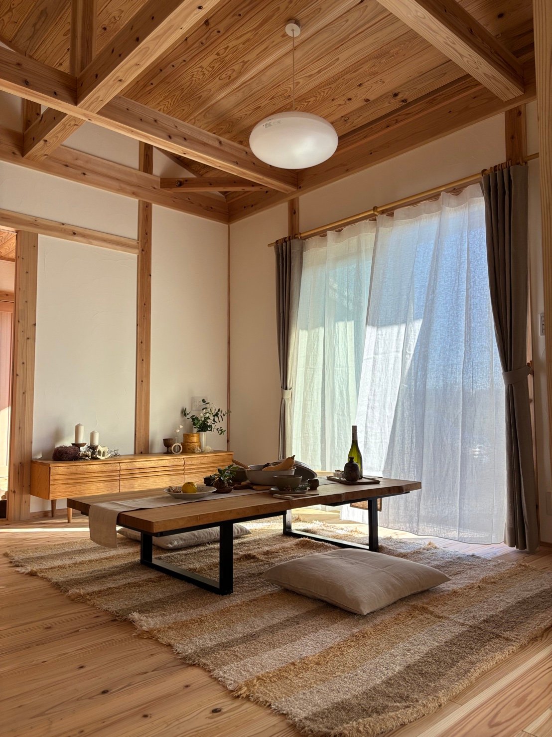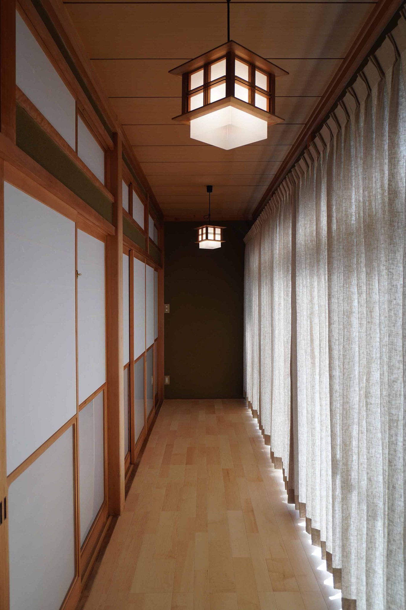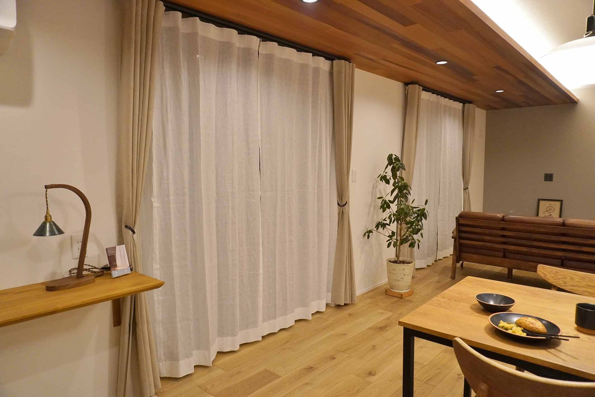 趣きある和の空間は、麻カーテンや